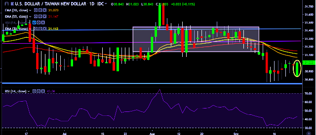 We prefer to take long position on USD/TWD only above 31.02, stop loss at 30.90 and target of 31.22/31.40.