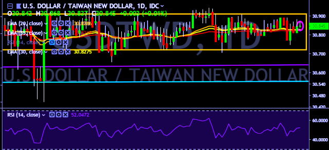 - USD/TWD is currently trading around 30.84 marks.