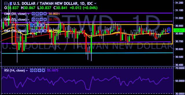 We prefer to take long position on USD/TWD only above 30.90, stop loss at 30.70 and target of 31.18.
