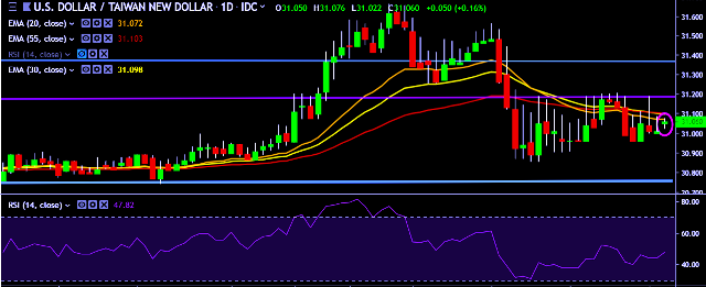 We prefer to take short position on USD/TWD only below 30.89 mark, stop loss at 31.22 and target of 30.68/30.56.