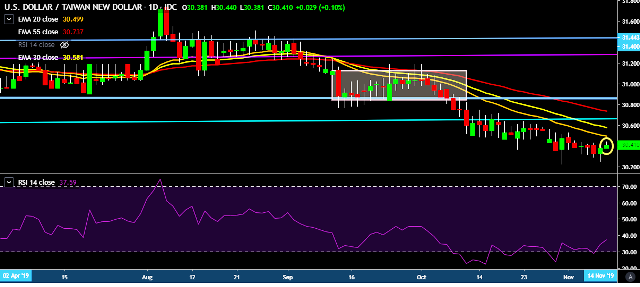 - USD/TWD is currently trading around 30.40 marks.