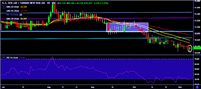 - USD/TWD is currently trading around 30.35 marks.