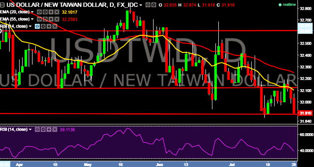 We prefer to take short position in USD/TWD around 31.97, stop loss 32.12 and target 31.87/ 31.72.