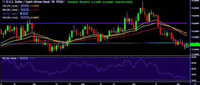 - USD/ZAR is currently trading around 14.06 levels.