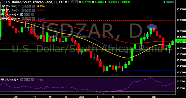 We prefer to go long on USD/ZAR around 14.20, stop loss at 13.90 and target of 14.40/14.68.