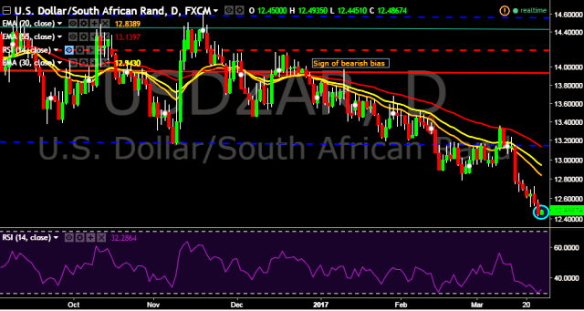 We prefer to take short position in USD/ZAR around 12.50, stop loss at 12.75 and target of 12.22.