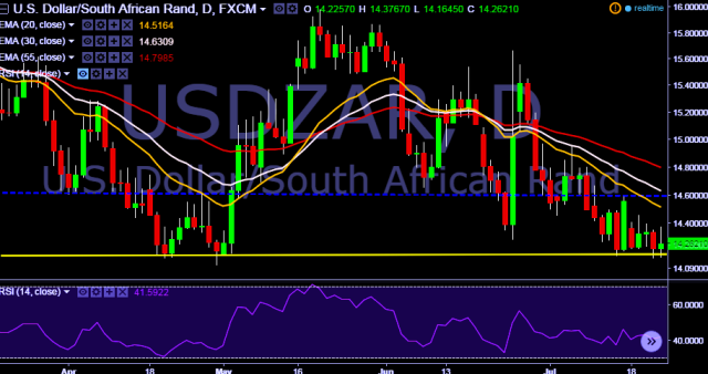 We prefer to take long position on USD/ZAR only above 14.37, stop loss 14.16 and target 14.62/14.75.