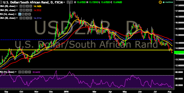 We prefer to take short position in USD/ZAR only below 13.66, stop loss 13.96 and target 13.46/13.26.