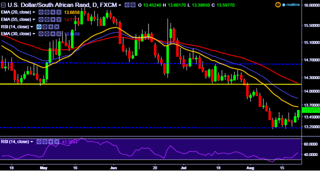 - USD/ZAR is currently trading around 13.58 levels.