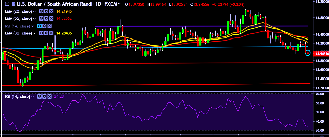 - USD/ZAR is currently trading around 13.94 levels.