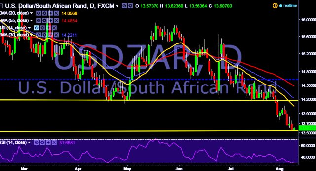 We prefer to take short position in USD/ZAR only below 13.57, stop loss 13.96 and target 13.26/13.01.