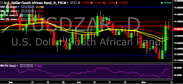 We prefer to go short on USD/ZAR only below 13.96, stop loss 14.19 and target of 13.75/13.31.