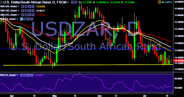 We prefer to take short position in USD/ZAR only below 14.17, stop loss 14.48 and target 13.68.