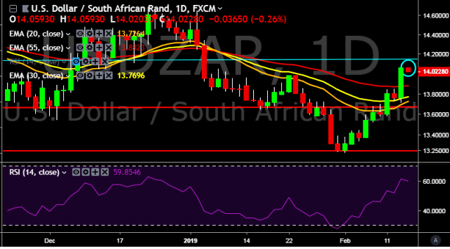 We prefer to take long position on USD/ZAR only above 14.06, stop loss at 13.90 and target of 14.38.