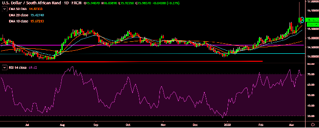 - USD/ZAR is currently trading around 15.96 levels.