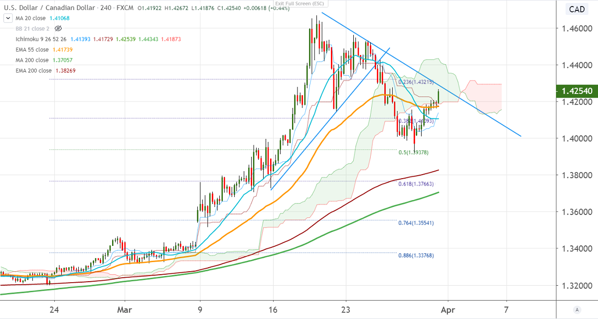 USDCAD showed a nice recovery of more than 100 pips for the day. The jump was mainly due to sell-off in crude oil prices. WTI crude was trading weak for the 5th consecutive week and lost more than 60%. It hits a low of $19.29 lowest level in 18 years.