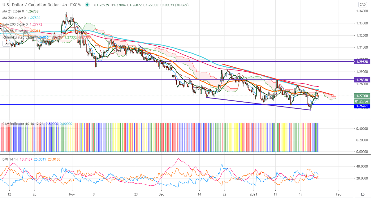 USDCAD continues to trade within a channel for the past one-month. The pair recovered more than 150 pips from a multi-month low on short covering. The Canadian retail sales rose to 1.3% in Nov compared to a forecast of 0.0%. USDCAD hits an intraday low of 1.26872 and currently trading around 1.26966.