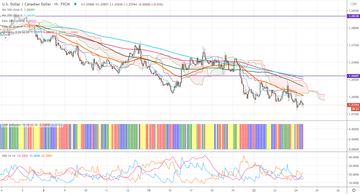 USDCAD continues to trade lower for the past 10 months on broad-based US dollar selling. The upbeat market sentiment and surge in crude oil price are supporting the Canadian dollar. The Bank of Canada governor Macklem said that country's current economic condition is far from the 2017 and 2018 levels. The central bank is planning to provide new targeted programs to counter the COVID pandemic. The pair declined despite surging US bond yield. USDCAD hits an intraday low of 1.27398 and currently trading around 1.27304.