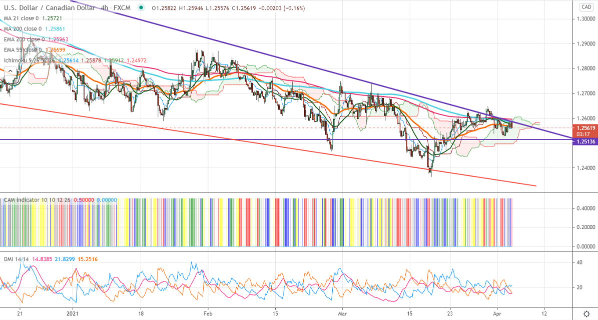 USDCAD is trading slightly lower after pullback till 1.26474. The surge in US bond yield is supporting the US dollar at lower levels. The US 10- year bond yield hits a fresh year high at 1.774% and shown a minor profit booking from that level. The better than economic data in the US also preventing the pair from major sell-off. US Nonfarm payroll increased by 916K in Mar compared to a forecast of 652K. The unemployment rate came unchanged at 6.0% vs an estimate of 6.0%. Average hourly earnings showed a decline of 0.1% vs an estimate of 0.1%. DXY halted its uptrend and lost more than 50 pips. Trend continuation only if it breaks 93.60.