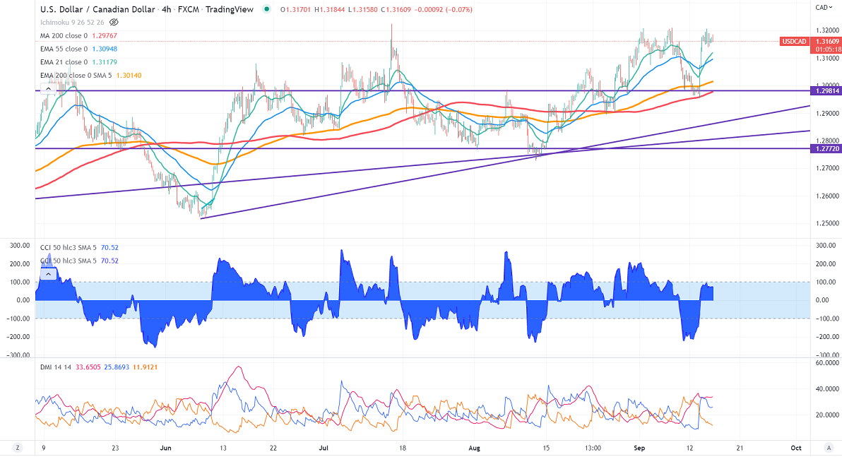 USDCAD consolidating in a narrow range after a major pullback above the 1.3200 level. The pair gained momentum after upbeat US CPI data. US PPI for August declined by -0.1% in line with expectations. The core producer price index jumped 0.40% vs the estimate of 0.30%.US Dollar index surged more than 200 pips from a minor bottom of 107.68. It hits an intraday high of 1.31844 and is currently trading around 1.31652.