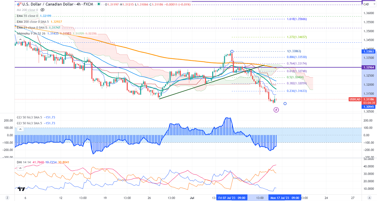 USDCAD lost its shine after the Bank Of Canada monetary policy. The central bank has hiked rates by 25 bpbs, the highest level since 2001. The bank warned that progress on the CPI front will be slower, which shows that BOC will follow monetary tightening. The weak US inflation also dragging the pair further down. It hits an intraday low of 1.30922 and is currently trading around 1.31208.