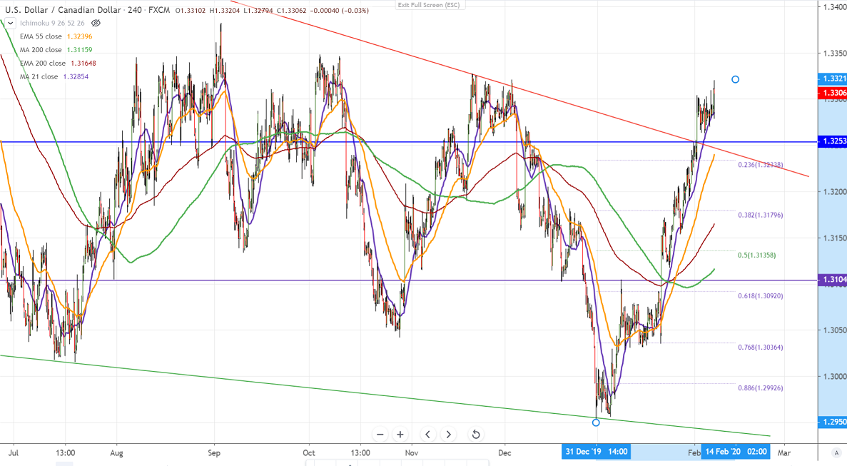 USDCAD halted its 5-weeks of the bullish trend and lost nearly 40 pips from a high of 1.3320 after releases of US and Canadian jobs data. US economy has added 225000 jobs in Jan vs forecast of 163000, unemployment slightly ticked up by 3.6% vs 3.5%. Average hourly earnings declined to 0.2% compared to 0.3%. Canadian employment came much better than expected, 34.5K jobs vs forecast of 16.3K, the unemployment rate came at 5.5% vs 5.7%.