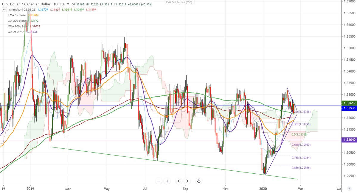 USDCAD is trading weak for past 1-week and shown a minor recovery. The dip was mainly due to a surge in crude oil prices. WTI crude oil prices surged more than $3 in the past two trading days on slight easing of coronavirus. The pair jumped till 1.32603 and is currently trading around 1.32852.