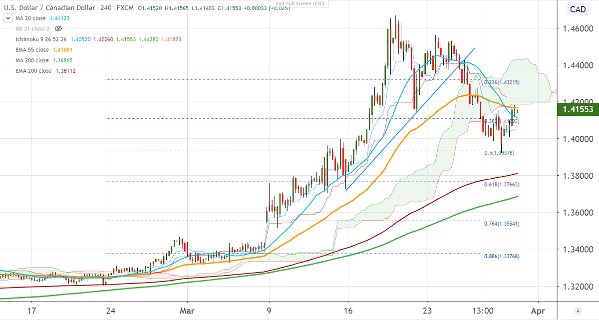 USDCAD showed a nice recovery of more than 200 pips on weak Crude oil prices. WTI crude oil has gone below $20 and hits the lowest level in 18 years. The decline was mainly due to coronavirus which might decrease the demand for oil.