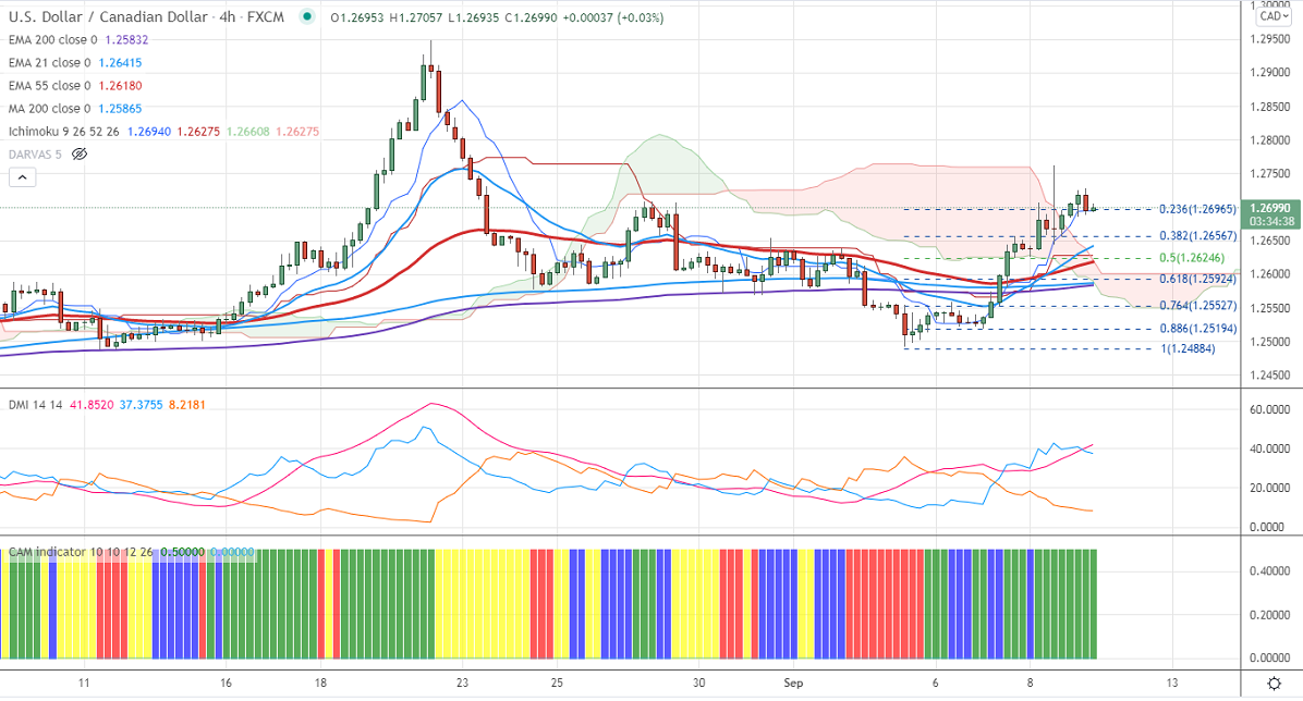 The pair rebounded sharply after the Bank of Canada monetary policy. It has kept its rates unchanged at 0.25% and continues its asset purchasing program at $2 billion per week. It hits a high of 1.27617 and is currently trading around 1.27019. The overall trend remains bullish as long as support 1.2490 holds.