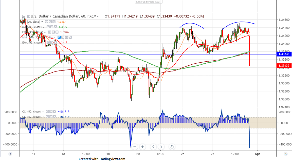 USDCAD has lost more than 70 pips after release of Canada GDP data.Canada GDP for the month of Jan came at 0.3% compared to forecast of 0.0% and 1.6% y/y vs 1.3%.It hits low of 1.33543 and is currently trading around 1.33475.
