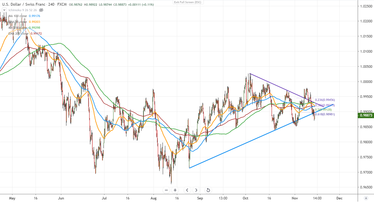 The short-term support for this pair stands at 0.9800, below that level targets 0.96598. Long term bearish continuation only below 0.96590.