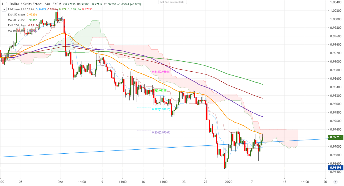 USDCHF is trading in a narrow range between 0.9645 and 0.9745 for the past 1-week. The pair has declined till 0.96683 yesterday and shown a minor recovery. The escalation of US-Iran tension is supporting Swiss Franc due to increasing in demand for Safe-haven assets. It hits an intraday high of 0.97290 and is currently trading around 0.97194. Markets eye US ADP employment and Trump speech today for further direction.