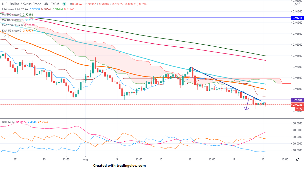 The pair is trading well below Tenken-Sen and Kijun-Sen, any convincing break below 0.9020 confirms bearish continuation. A dip till 0.9000/0.8945 is possible. The near-term resistance is around 0.9070 and any break above targets 0.91150/0.9130. The decline from 0.9900 will get completed at 0.9050 only if it breaks 0.9250.