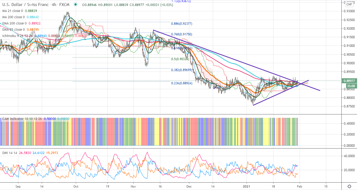 The near term resistance at 0.8925; any convincing violation above will take to the next level till 0.89398 (55- day EMA)/0.8965/0.9000.