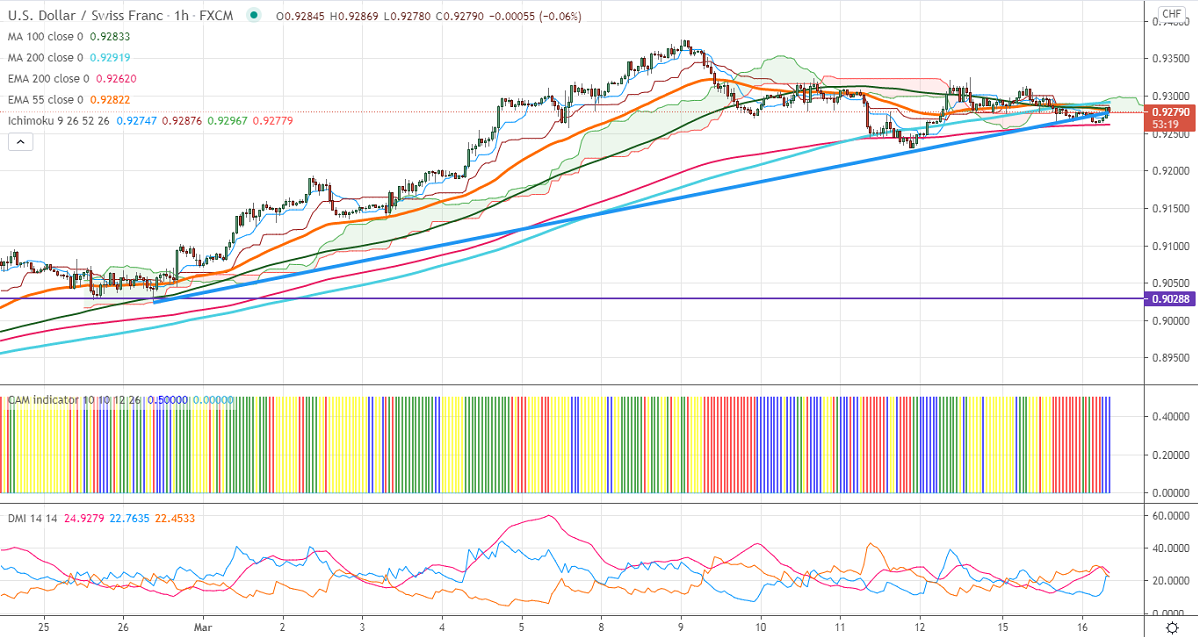 Ichimoku Analysis- The pair is trading below Kijun-Sen, Tenken-Sen, and cloud. But it should close below 0.92250 for bearish continuation.