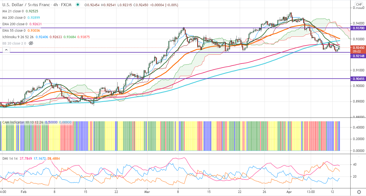 Ichimoku Analysis- The pair is trading below 4-hour Kijun-Sen, Tenken-Sen, and cloud. Minor weakness only if it breaks 0.9200.