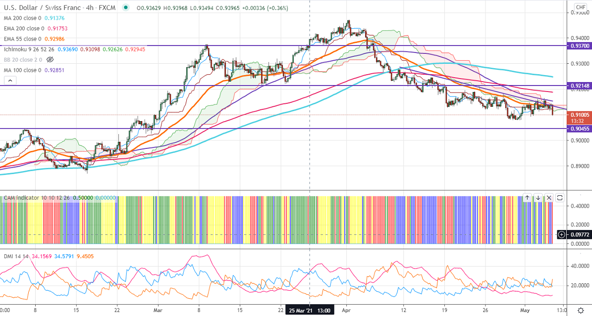 USDCHF has once again declined after a jump above 0.9150 levels. The minor sell-off in the US dollar is putting pressure on this pair at higher levels. The intraday trend of USDCHF is still lower as long as resistance 0.9180 intact. The number of private-sector jobs rose to 742000 in Apr compared to a forecast of 872K. The US ISM services PMI came at 62.7% in Apr slightly below the estimate of 64.2. The US dollar index jumped is trading weak after hitting a high of 91.42. Any violation above 91.50 confirms minor bullishness. The long-term trend is still on the downside as long as resistance 0.94725 holds.