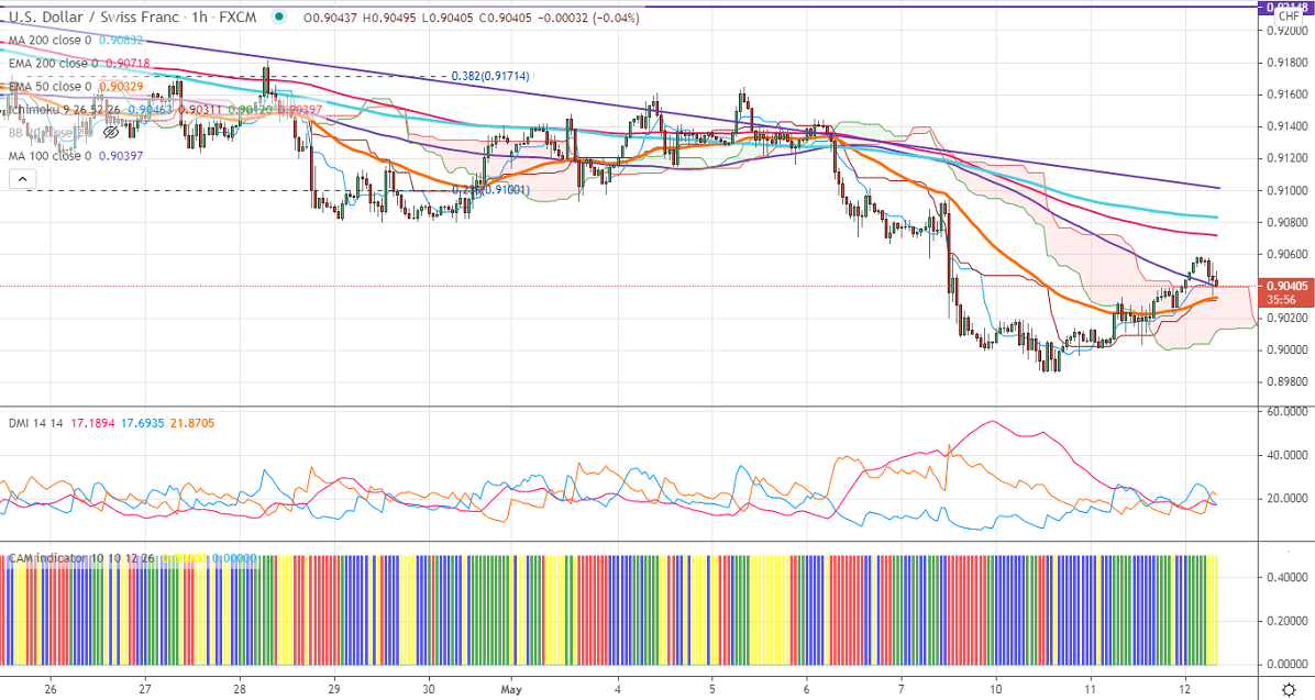 USDCHF has shown a minor recovery to 0.90585 and lost nearly 20 pips on broad-based US dollar selling. DXY has shown a minor pullback till 91.41 and started to decline. Any violation below 90 confirms a bearish continuation. A dip till 89.60/89.20 likely. Markets eye US CPI for further direction. The recovery in US bond yield is preventing USDCHF from further selling. The US 10-year bond yield surged more than 10% from minor bottom 1.48%. The intraday trend of USDCHF is still lower as long as resistance 0.9075 intact. The long-term trend is still on the downside as long as resistance 0.94725 holds.