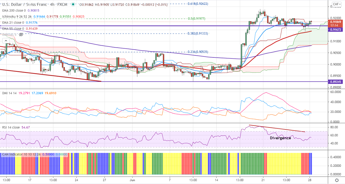 USDCHF is consolidating in a narrow range between 0.92368 and 0.91420 for the past week. The US dollar has shown a nice recovery after upbeat PCE data. It has surged to 3.1% y/y vs. a forecast of 2.9%. The monthly core Personal consumption came at 0.7%, above the estimate of 0.6%. DXY took support near 200-H MA and shown a minor jump. Any close above 92 levels confirms further bullishness. The pair hits an intraday low of 0.91905 and is currently trading around 0.91842.