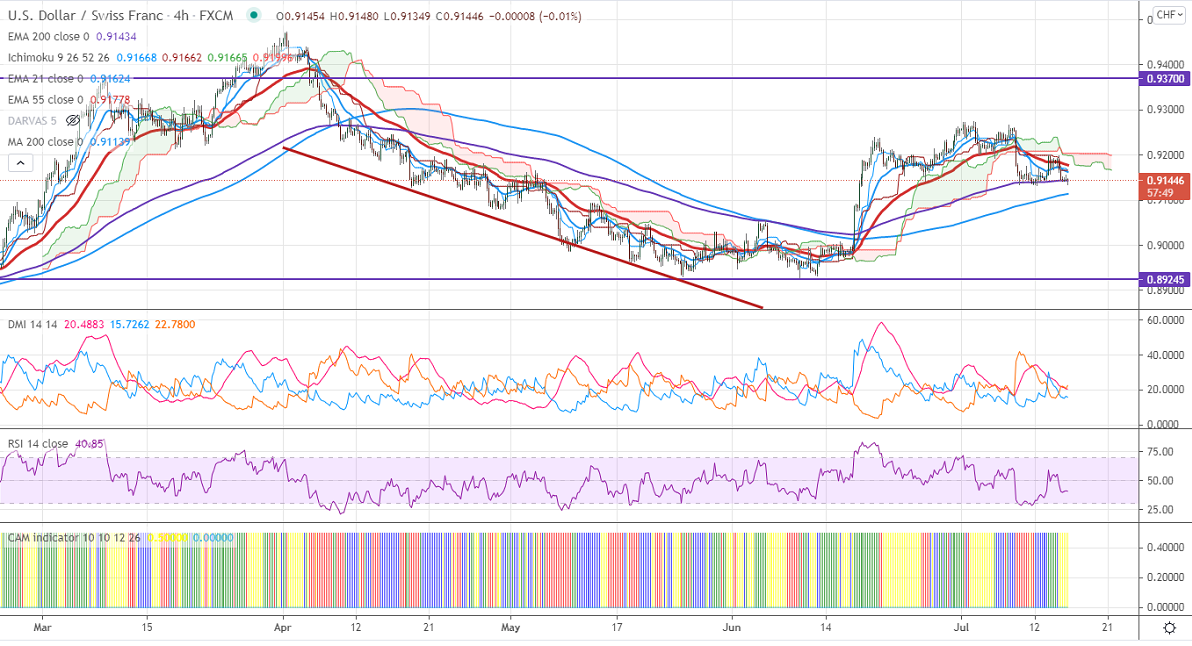 The near-term support is around 0.91219, breach below will take the pair to 0.9059/0.9000. On the higher side, immediate resistance is around 0.9200. Any convincing breach above targets 0.9238/0.92750.