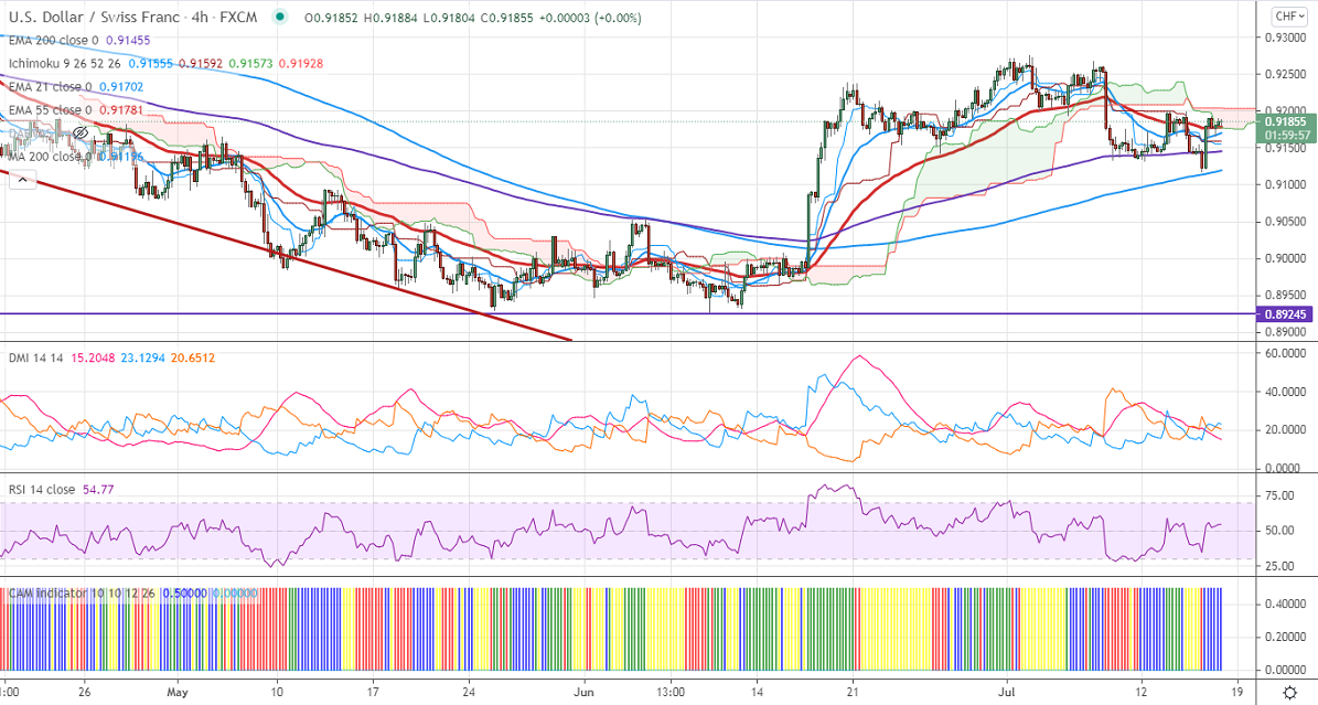 The near-term support is around 0.91219, breach below will take the pair to 0.9059/0.9000. On the higher side, immediate resistance is around 0.9200. Any convincing breach above targets 0.9238/0.92750.