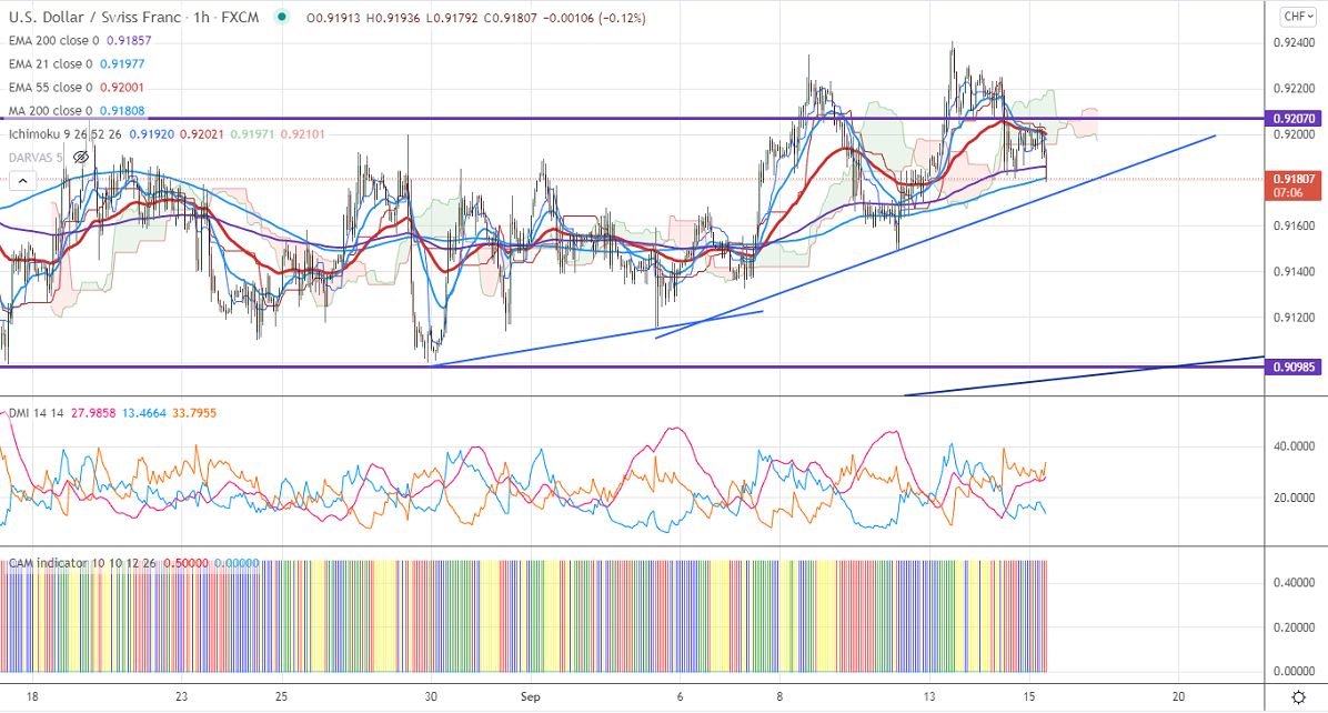 The pair is once again consolidating in a narrow range between 0.9150 and 0.92410 for the past four days. The board-based US dollar weakness after US CPI data is putting pressure on this pair at higher levels. The US inflation rose by 0.3% in August compared to a forecast of 0.4%. The headline CPI for the year jumped to 5.3%, in with expectations. It remains muted and buyers are waiting for USDCHF to cross this week high. At the time of writing, USDCHF is hovering around 0.92201 up 0.14%.