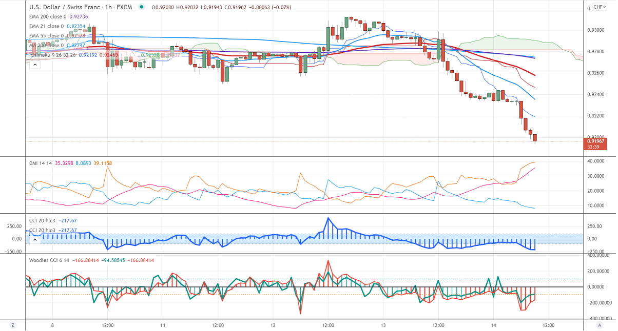 It is trading lower for second days and lost more than 100 pips on board-based US dollar weakness. The US dollar index declined below 94 levels despite upbeat US inflation data. The US Inflation rose 4% in September and annual inflation rose 5.4% highest increase in 13 years. The Fed meeting minutes show that the central bank to taper bond buying by mid-November or mid-December this year. The intraday trend of USDCHF is still bearish as long as resistance 0.92750 holds. At the time of writing, USDCHF is hovering around 0.92041 down -0.40%.