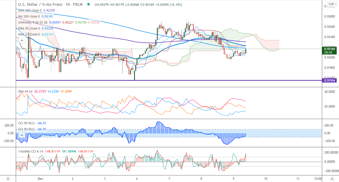 The pair has once again declined after a minor pullback above the 0.92650 level. It has formed a double top around 0.92700, any breach above 0.927500 confirms intraday bullishness. The weakness in the US dollar is putting pressure on this pair at higher levels. Intraday bias in USDCHF remains bearish as long as resistance 0.92750 holds. The slight demand for safe-haven assets like Swiss franc due to new corona variant Omicron. A jump of more than 15% in the US 10-year yield is preventing the pair from further sell-off. It hits a low of 0.091915 and is currently trading around 0.92105.