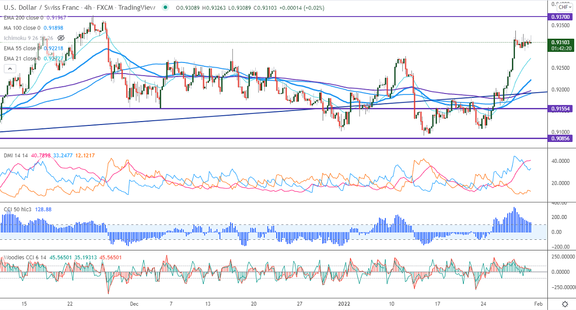 The pair is consolidating in a narrow range after hitting a high of 0.93378. The US dollar gained sharply after the hawkish Fed monetary policy. US GDP growth accelerated at a 6.9% annualized pace compared to a forecast of 5.3%. US 2-year yield has shown a massive rally and hits the highest level since Feb 2020. USDCHF hits an intraday low of 0.93263 and is currently trading around 0.93160.