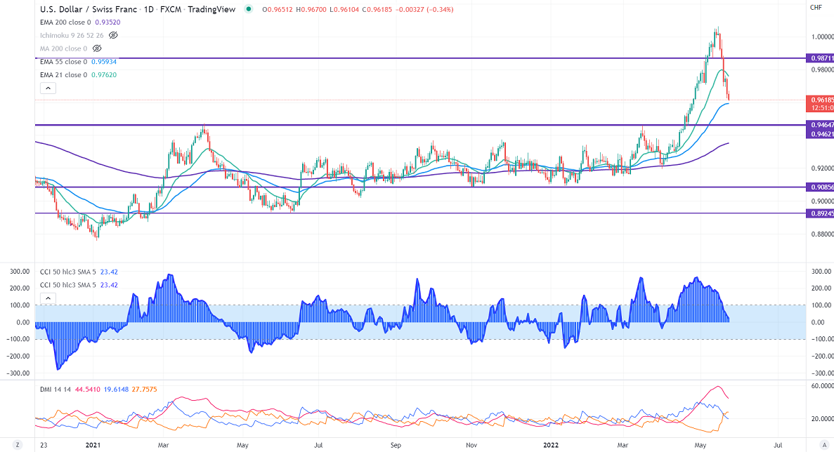 The pair is trading weak for the past five days and declined more than 400 pips. The hawkish comments from the SNB chairman and increase in demand for safe-haven assets support the Swiss franc. Markets eye the US Fed Chairman's speech and flash manufacturing PMI for further direction. According to the CME Fed watch tool, the probability of a 50 bpbs rate hike dropped to 88.8% from 94.9% a day ago.