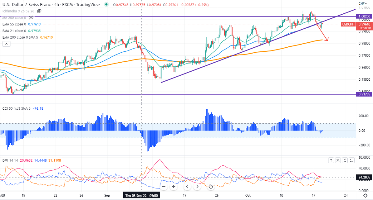 Technically in the 4-hour chart, the pair is holding below short-term (21- and 55 EMA) and above 200 EMA (0.9826). Any break below 0.9900 will take the pair to 0.9825/0.9780. USDCHF had an intraday low of 0.99187 and is currently trading around 0.99319.