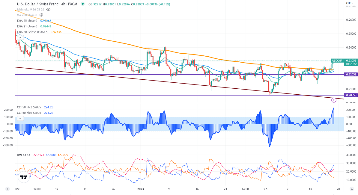 USDCHF trades high for the fourth consecutive day on positive US economic data. The producer price index rose to 6% YoY, well above an estimated 5.6%. The inflation for the month of Jan increased by 0.70% monthly basis vs an estimated 0.20%. It hits an intraday high of 0.93040 and is currently trading around 0.9290.