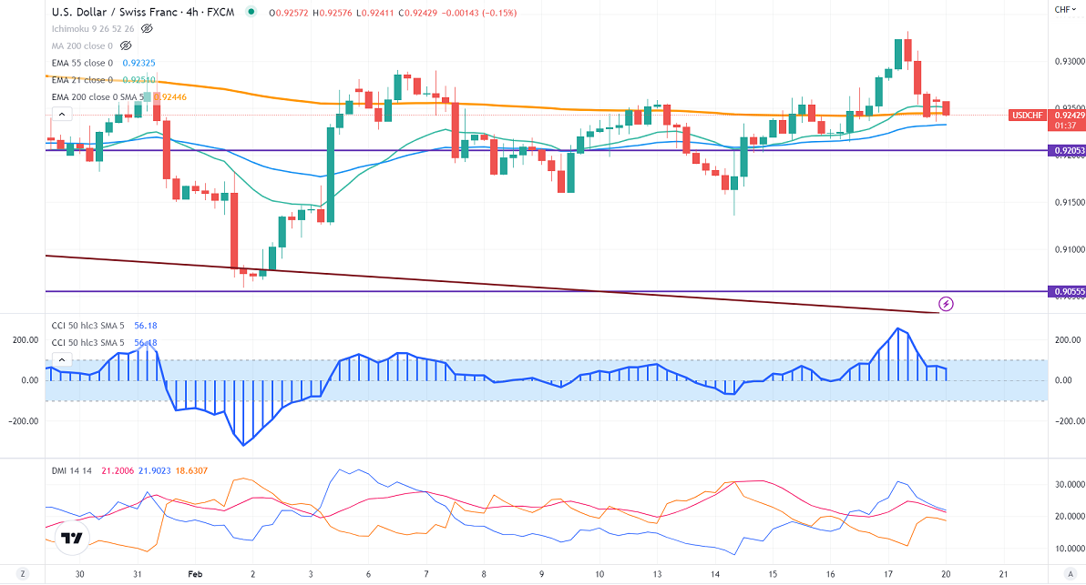 Technically in the 4-hour chart, the pair is holding above short-term (21 and 55 EMA) and above long-term 200 EMA (0.92445). Any break below 0.9230 confirms further bearishness, a dip to 0.9200/0.91345 is possible.