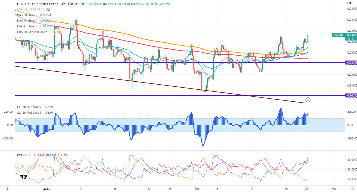 Technically in the 4-hour chart, the pair is holding below short-term (21 and 55 EMA) and above long-term 200 EMA (0.94980). Any break below 0.9270 confirms further bearishness, a dip to 0.9220/0.9160/0.9130 is possible.